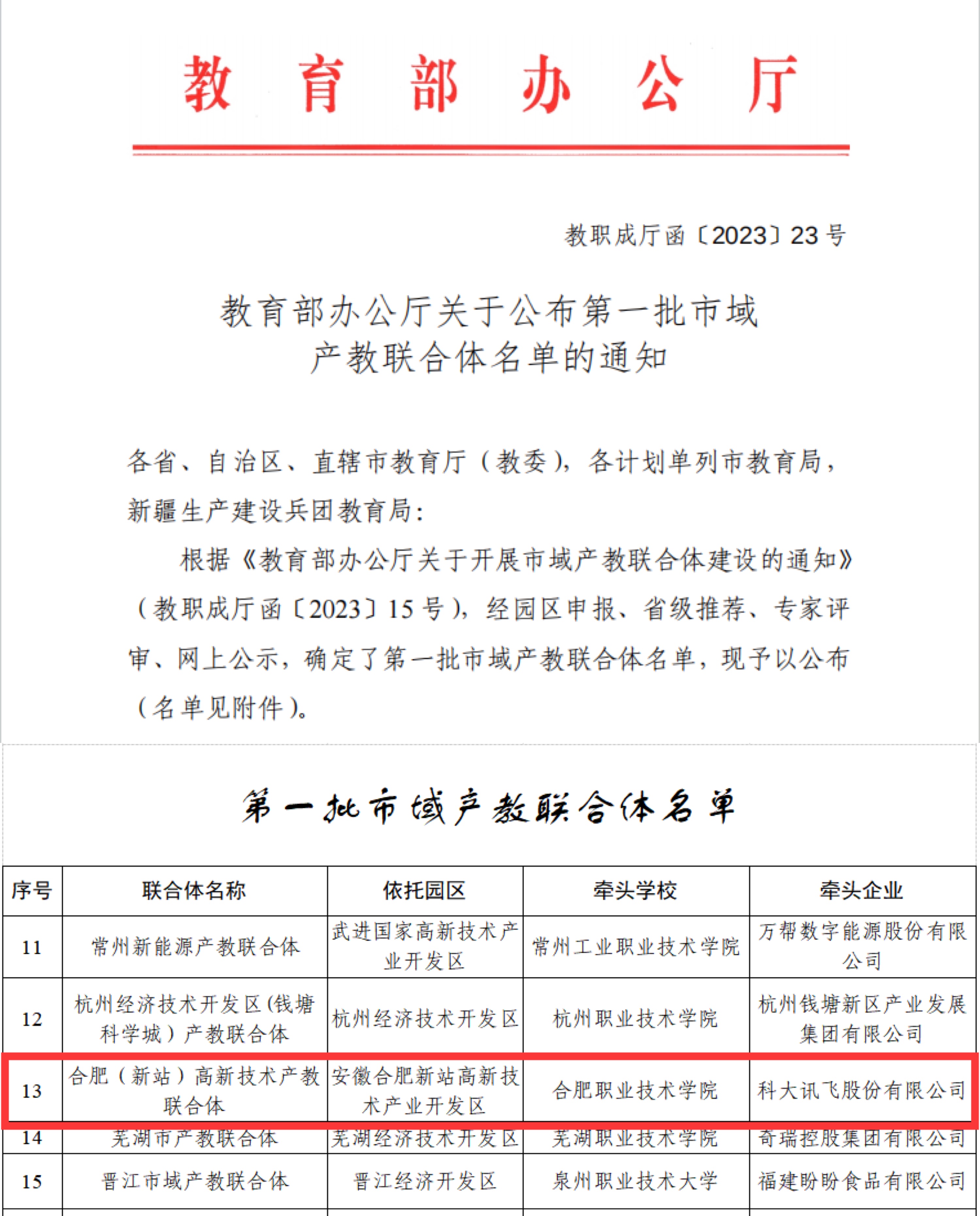 教育部公布第一批28家市域产教联合体名单,前期经园区申报、省级推荐、专家评审、网上公示等环节,由伟德官网作为牵头学校、科大讯飞股份有限公司作为牵头企业、安徽合肥新站高新技术产业开发区作为依托园区的“合肥(新站)高新技术产教联合体”获批立项“国家级市域产教联合体”。市域产教联合体是全面贯彻党的二十大精神、增强职业教育适应性和吸引力的重要举措,是深化产教融合、服务区域经济发展的重要途径。合肥(新站)高新技术产教联合体是依托安徽合肥新站高新技术产业开发区,以伟德官网作为教育主体,聚焦新型显示、集成电路、新能源汽车、高端装备、新材料等领域,发挥政府统筹、产业聚合、企业牵引、学校主体作用,打造“三元一体”的市域产教联合体。