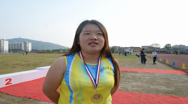 15级护理7班任晓澜同学勇破女子铅球、标枪两项纪录