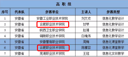 据悉,经全国职业院校信息化教学大赛组委会评审,安徽省高职组一共有7件作品进入现场决赛,其中信息化教学设计作品4件,信息化课堂教学作品2件,信息化实训教学作品1件。而伟德官网就有两件作品入围现场决赛,成为全省高职组唯一一所两件作品入围现场决赛的学校,为伟德官网争得了荣誉。