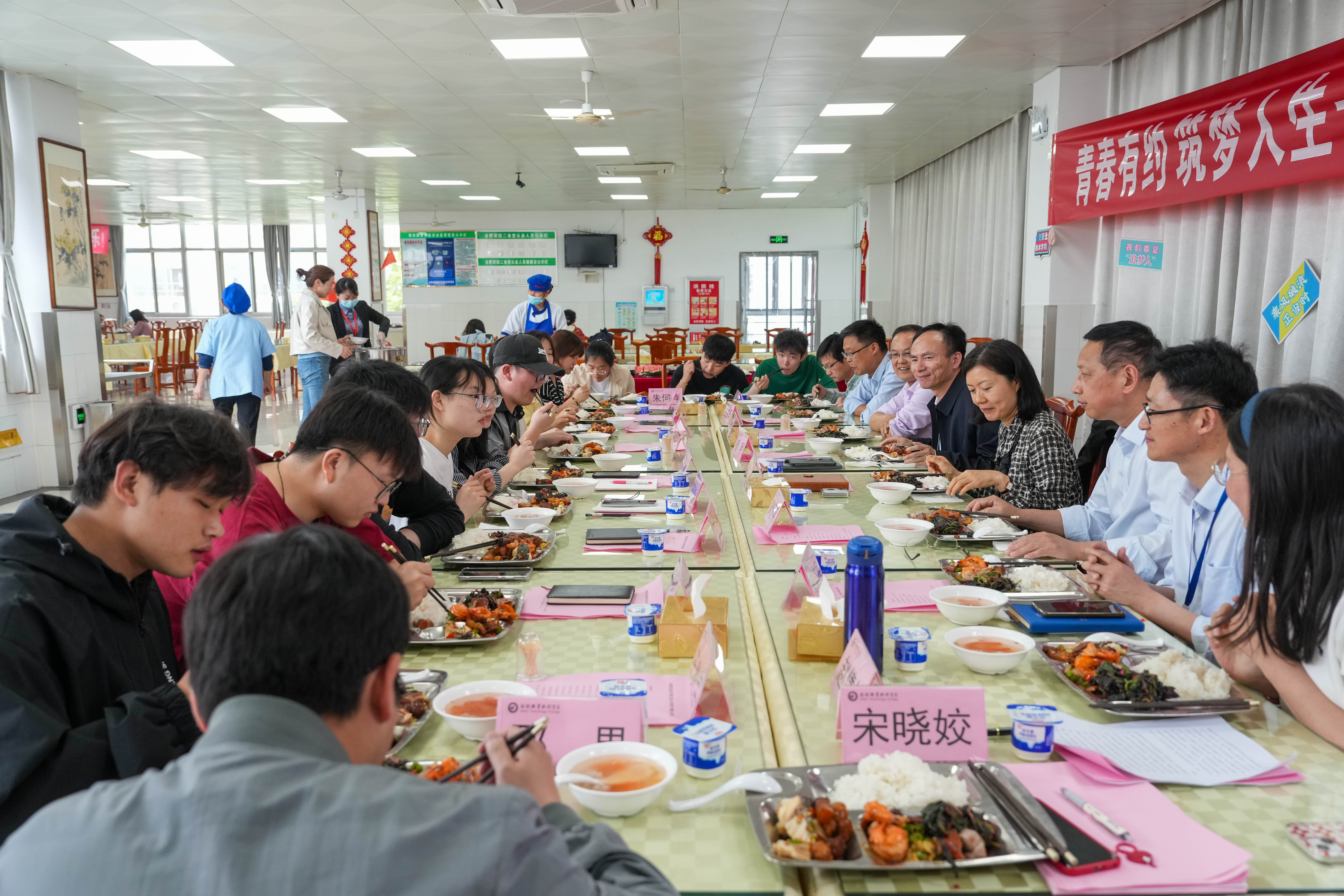 在五四青年节到来之际,2024年“青春午餐会”在鼓山校区食堂如期举行。校党委副书记、校长檀明,党委副书记金飞燕与来自各学院的9名青年学生代表如约而至,共进午餐,共谈青春,共讲奋斗,共话理想!鼓山校区管委会、关工委、学生处、教务处、总务处和团委等相关职能部门负责同志陪同出席。