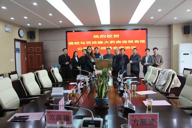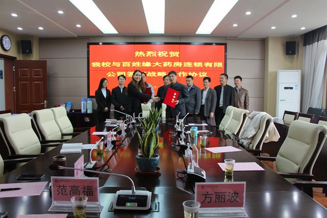 11月16日,安徽百姓缘大药房连锁有限公司行政总监洪兰以及该公司人力资源部、培训部、拓展部负责人一行来伟德官网签订“店长储备人才班”和校内“实体药房”合作战略协议。副校长周晓隆及生物工程学院相关负责人出席签约仪式。签约仪式由生物工程学院党总支书记宁业群主持。