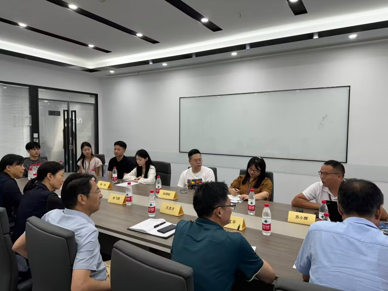 随后王杰才一行参观了安徽省跨境电商创新服务中心、安徽泰盈信息科技有限公司,并在蜀山经开区科技大厦与众多企业展开座谈交流。蜀山经开区党工委书记、管委会主任卢磊、党工委委员、管委会副主任吴成运、蜀山经开区社会事务处副处长朱江以及老乡鸡、正德人力等企业代表对学校一行的到来表示欢迎,并就蜀山经开区部分企业的发展状况、产业布局和人才招聘做了详细介绍,期望双方深度合作,携手走出一条互利共赢的高质量发展道路。