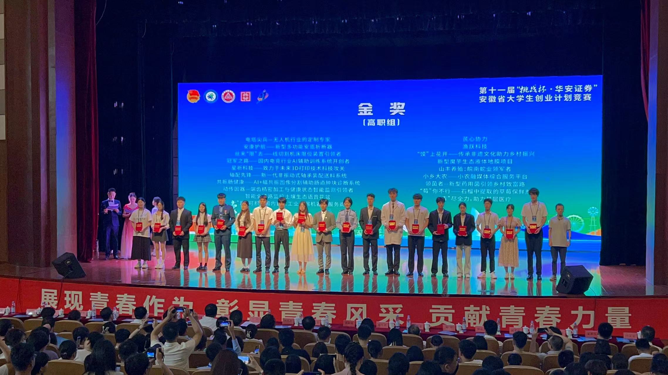 6月18日至20日,由团省委、省教育厅、省人力资源和社会保障厅、省科协、省学联、芜湖市人民政府联合主办的第十一届“挑战杯·华安证券”安徽省大学生创业计划竞赛(俗称“小挑”)省级决赛在安徽工程大学圆满落幕。经过激烈角逐,伟德官网荣获2金3银5铜的优异成绩,其中金奖数量位列安徽省高职院校首位,并继上届“小挑”之后蝉联“优秀组织奖”。