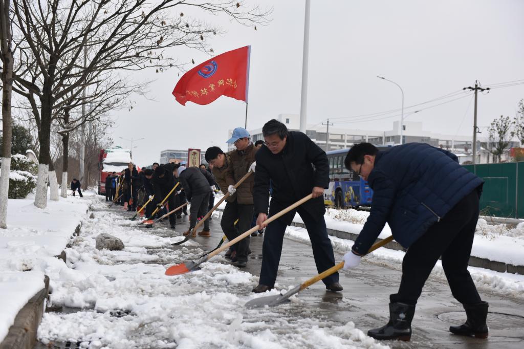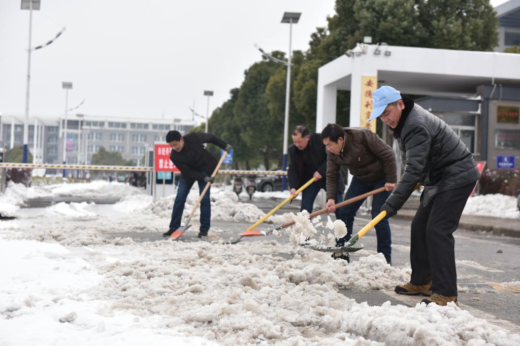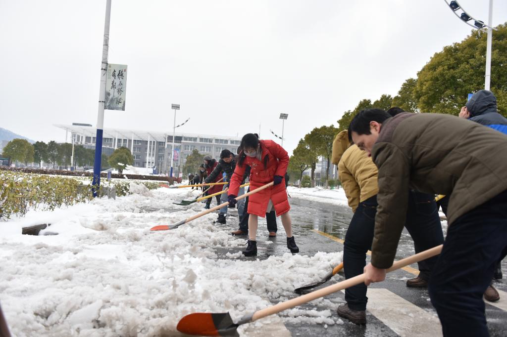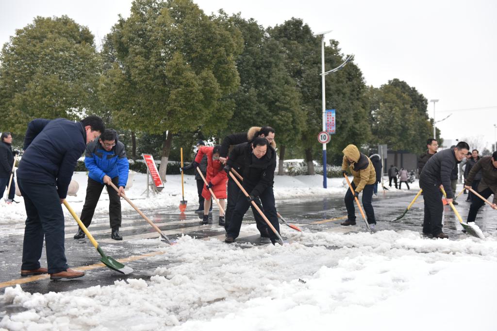 元月26日下午,在巢湖市姥山路段(亚父路——裕溪路段)伟德官网几十余名教职员工热火朝天地清理道路积雪。虽然寒风凛冽,大家的手和脸冻得通红,但大家不畏严寒,分工明确,纷纷拿起铁锹、扫帚等工具与风雪“搏斗”。经过一个多小时的奋战,道路积雪被清除,保证了周边群众和教职员工以及车辆的正常出行。