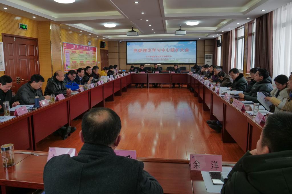 元月30日下午,伟德官网在行政楼五楼会议室召开党委理论学习中心组扩大会。中心组成员,直属分党委、各党总支书记,各处室、二级学院、直属部门主要负责人参加了会议,会议由校党委书记罗兆好主持。