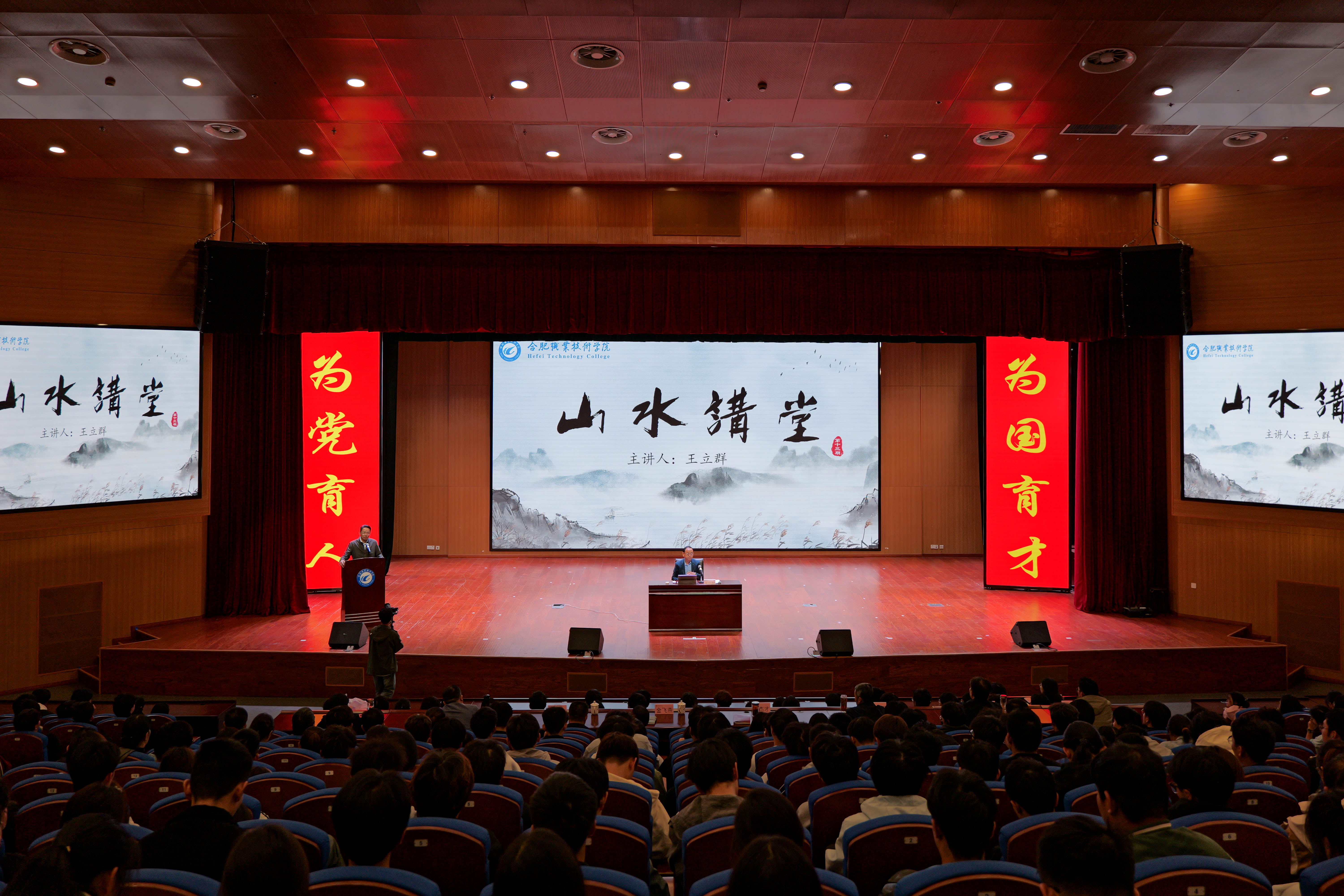 为全面贯彻落实党的二十大和二十届二中、三中全会精神,深入学习贯彻习近平文化思想,探究中国式现代化的文化动力,11月6日下午,学校“山水讲堂”特邀合肥市委宣传部副部长王立群来校开展了以《深入学习贯彻习近平文化思想,培养和争做堪当强国建设民族复兴大任的栋梁之材》为主题的宣讲报告会,此次报告会是伟德官网“山水讲堂”的第十三场活动,校党委书记王杰才主持,学校领导班子成员,各部门、各二级学院主要负责人,马院全体教师、基础相关学科教师及部分师生代表参会,鼓山校区通过视频设立分会场。