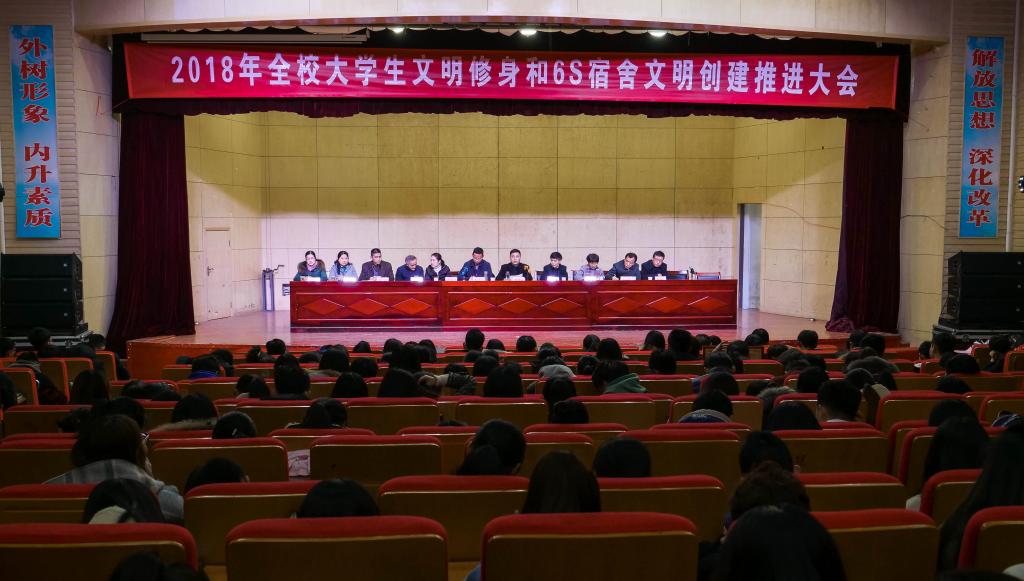 3月20日下午四时整,伟德官网在大学生活动中心礼堂召开大学生文明修身和“6S”宿舍文明创建工作推进大会,学校党委副书记胡其云,宣传部(文明办)、学工部、团委相关工作人员,总务处及物业办负责人,各二级学院党总支书记、副书记、全体专职辅导员和在校班级班主任,全体学生党员、入党积极分子和校、院主要学生干部,寝室长代表等共同参加了会议。会议由学生处处长高恒平主持。