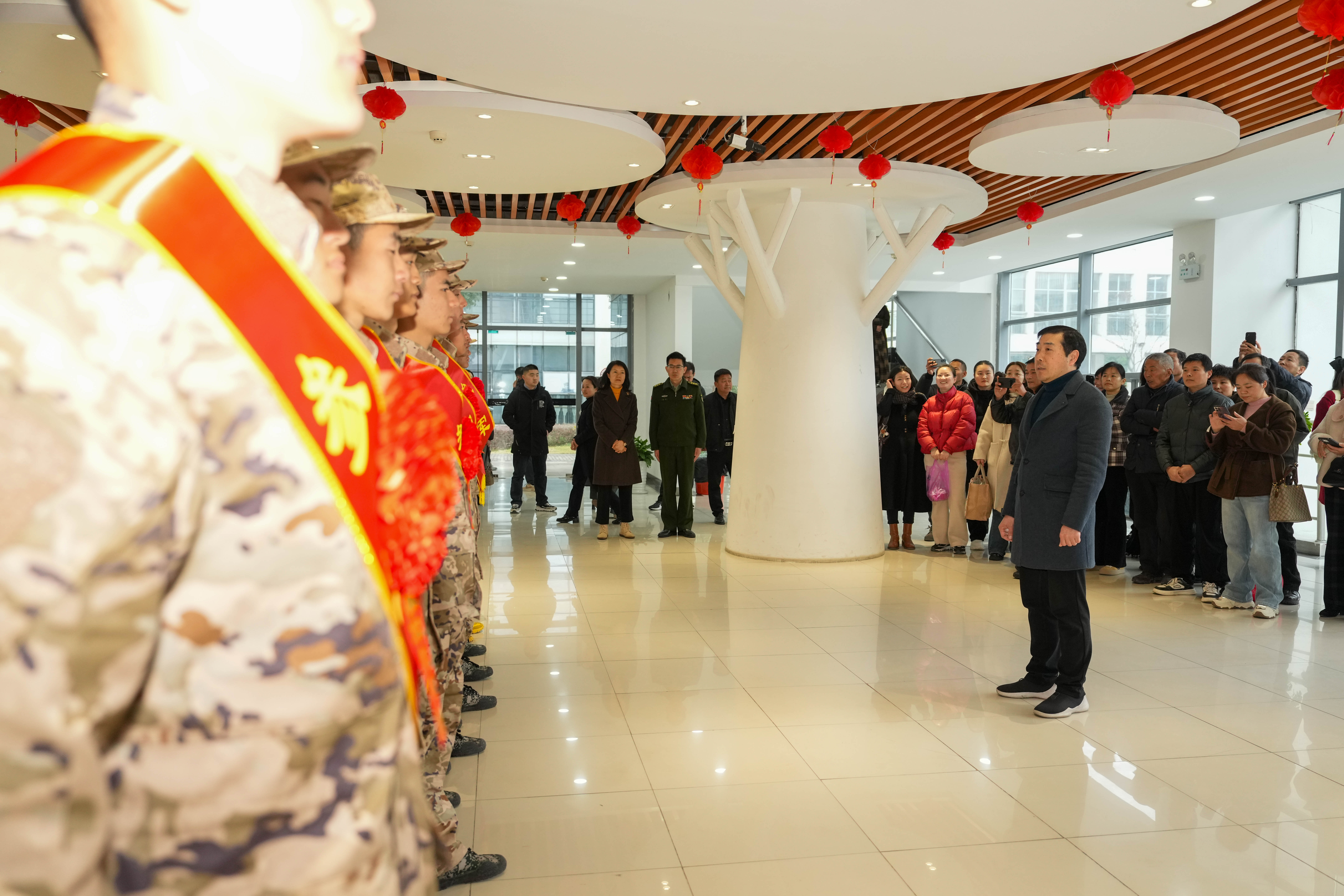 余洲对新兵们经过层层选拔、即将光荣入伍表示热烈祝贺,对学校支持国防事业、动员学生参军表示崇高敬意,对积极送子当兵、来校现场送行的家长表示衷心感谢。鼓励新兵们要珍惜在军队的锻炼机会,铸牢忠诚品质、滋养家国情怀、提高军事素质、早日建功立业,为家长争光、为母校添彩。