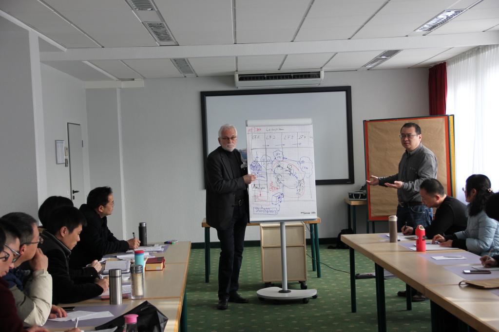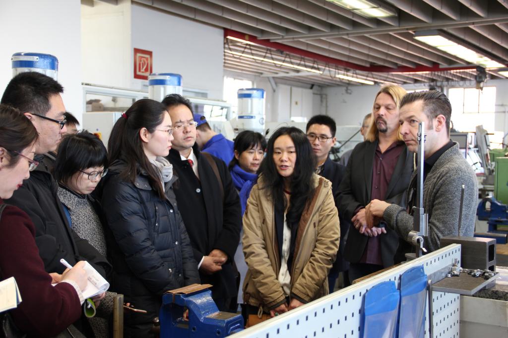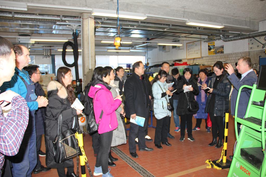 按照工作计划,研修活动主要在德国下萨克森州汉诺威市、奥斯纳布吕克市等地开展。期间,学员们进入奥斯纳布吕克应用科学大学、汉诺威金属加工与电子技术职业教育学校等高校、职教学校、跨企业培训中心的课堂、实训室,在埃德曼教授、施特拉丁教授、阿德曼教授、霍恩教授、比尔申科教授、拉克那教授等德国职业教育专家的带领下,从理论到实践,系统学习了德国职业教育体系及法规、行为导向教学法、教师的培养培训;深入大陆轮胎、小松德国有限公司、江森自控以及铜制品加工厂、家具厂、啤酒厂等企业,了解企业在双元制职业教育中发挥的作用;来到当地手工业行会、跨企业培训中心,与行会负责人对话交流,观摩双元制学生的培训考核。