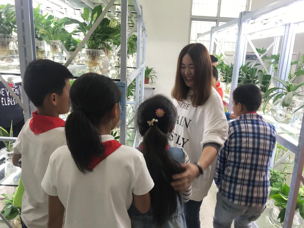 为小学生展示花卉水培技术
