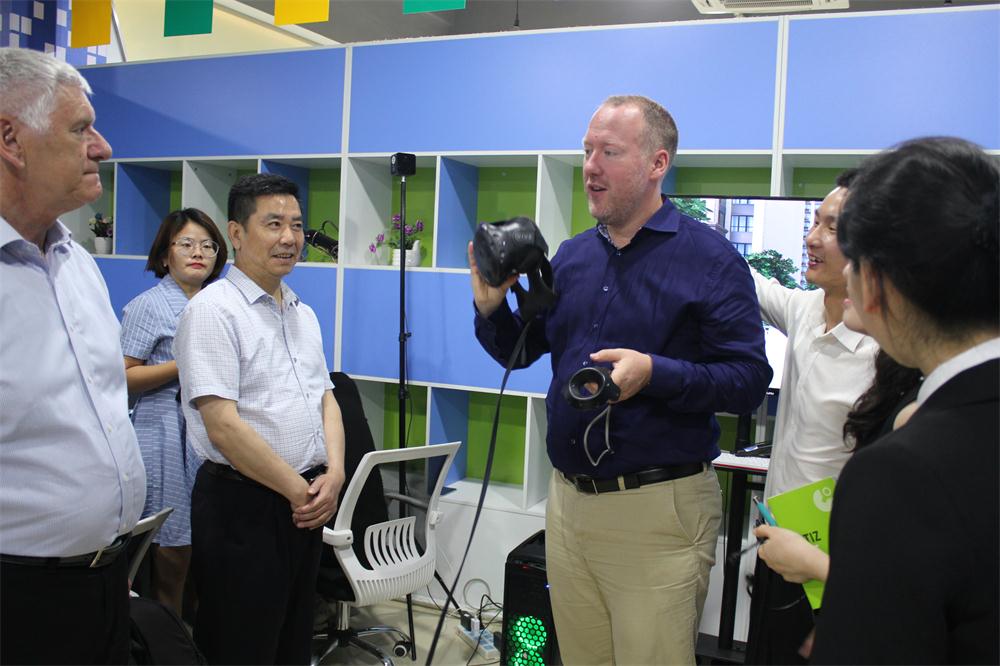 代表团一行先后考察了驻园大学生创业企业、校企合作“梦工厂”项目平台、高新技术企业合肥影领科技有限公司和园区文创基地。在随团翻译解说下,代表团与学校及企业进行了深入交流。