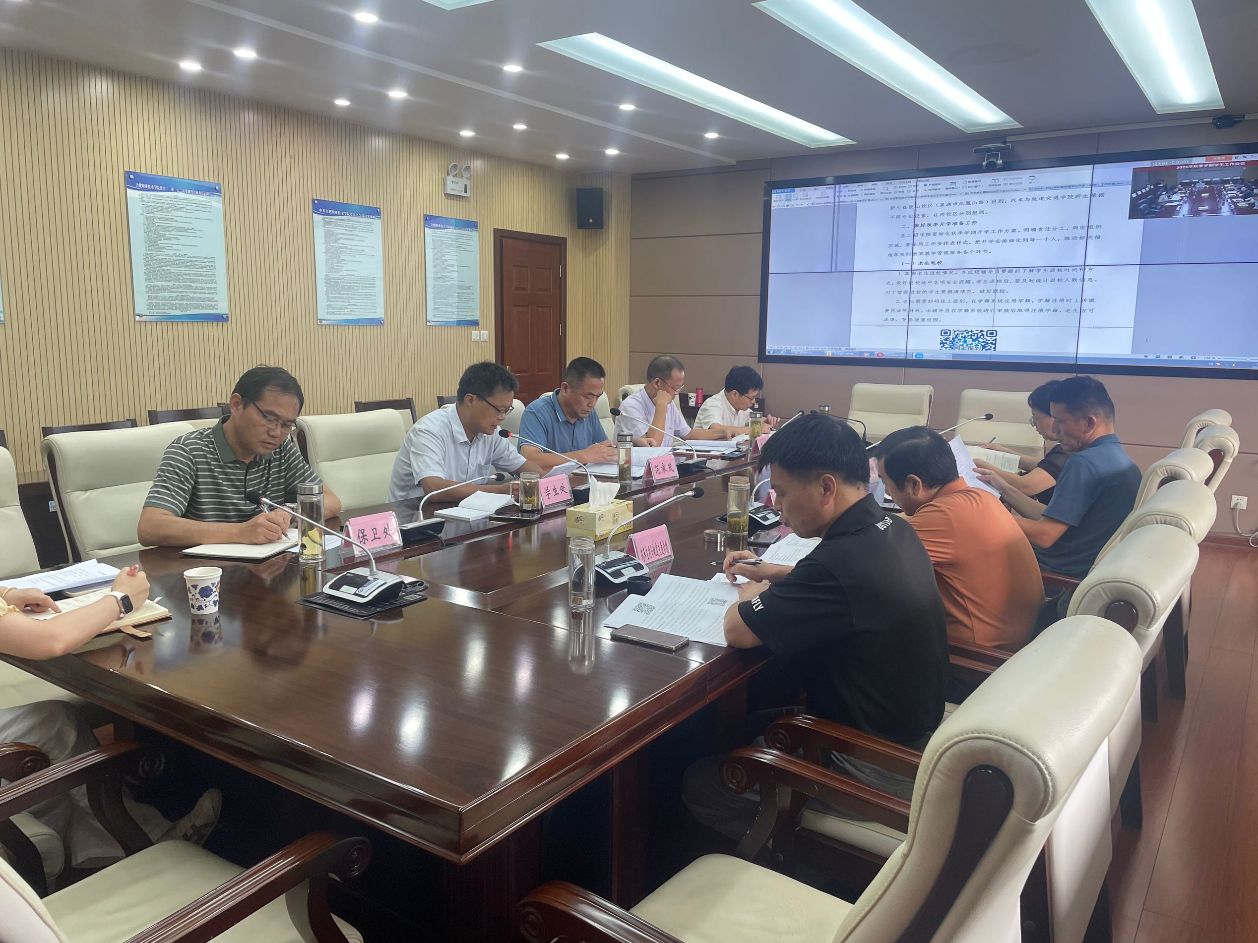 会上,学生处就开学(迎新)工作方案、入学教育方案以及新生开学典礼暨军训动员大会初步安排进行了详细汇报;保卫处对《2025级学生军训工作实施方案》进行了汇报和说明。
