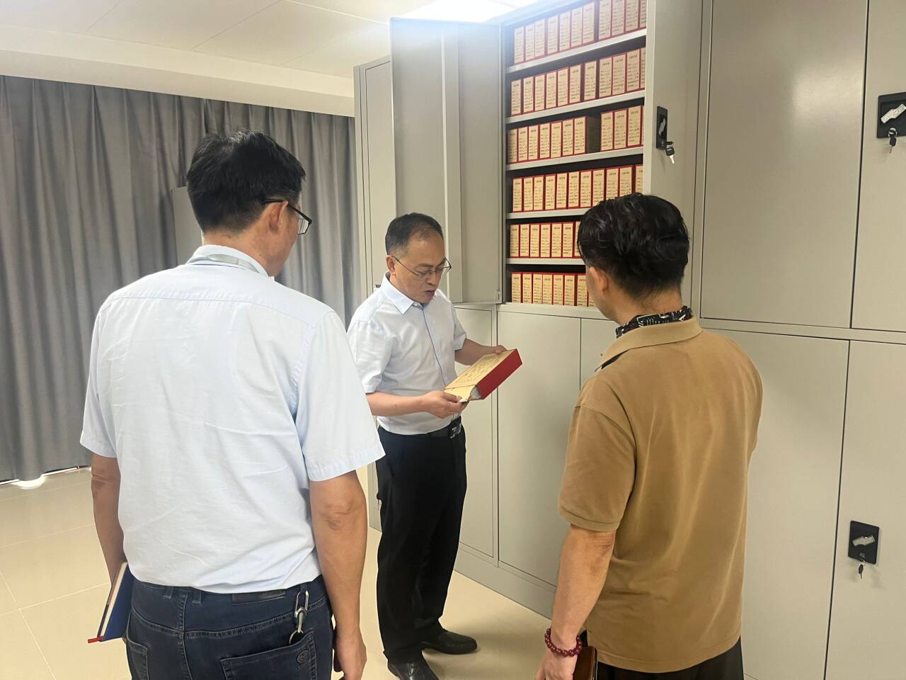 在听取介绍后,省档案局检查组深入学校综合档案室、档案库房,通过实地查看、查阅资料、现场询问等方式,对学校档案的收集、整理、保管及利用等工作进行了全面、细致的监督检查。