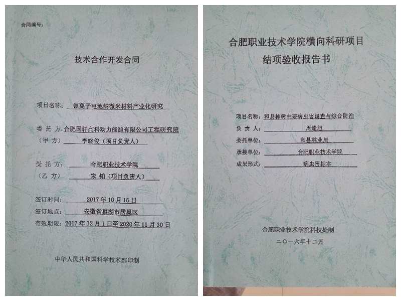 发挥人才优势提供决策咨询。发挥专业人才优势,以企业技术革新项目为主要方向,与企业进行技术创新、产品开发、科研攻关、课题研究、项目推进等方面合作,着力开展技术开发、技术咨询、技术服务、技术转让为重点的“四技服务”,校企协同攻关。伟德官网教师宋铂与合肥国轩高科动力能源有限公司联合开展“锂离子电池纳微米材料产业化研究”的课题研究;周逢旭老师与和县林业局联合开展“和县柿树主要病虫害调查与综合防治”的课题研究。(供稿:科技处 编辑:朱鹏飞)
