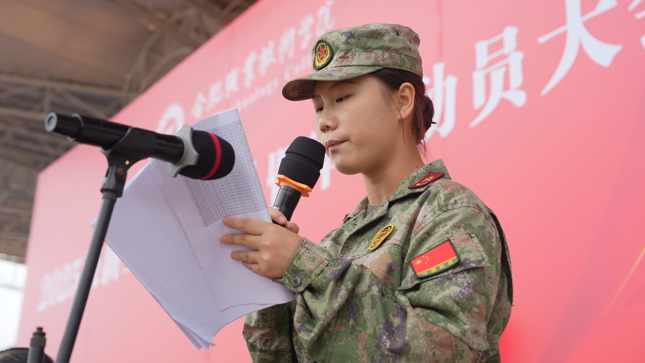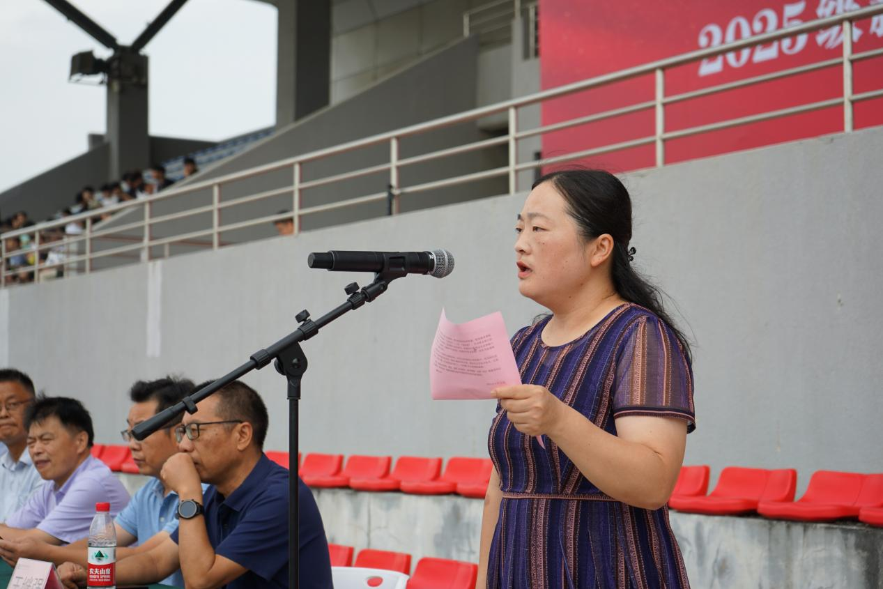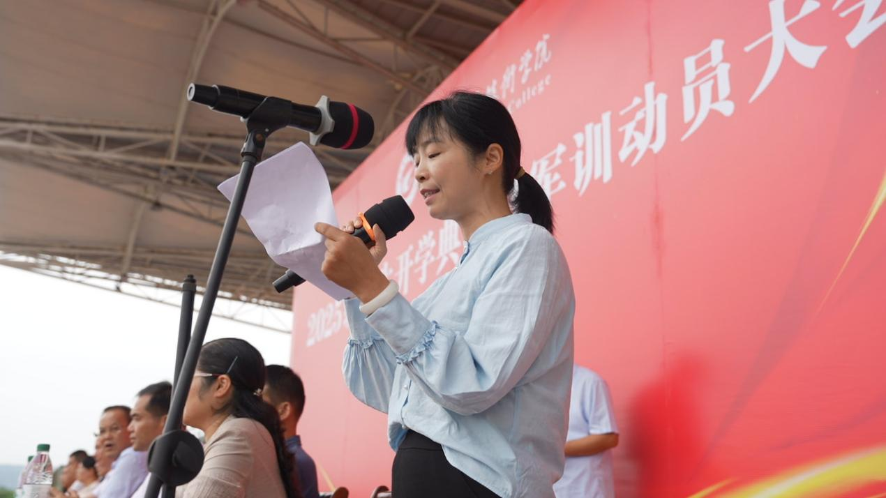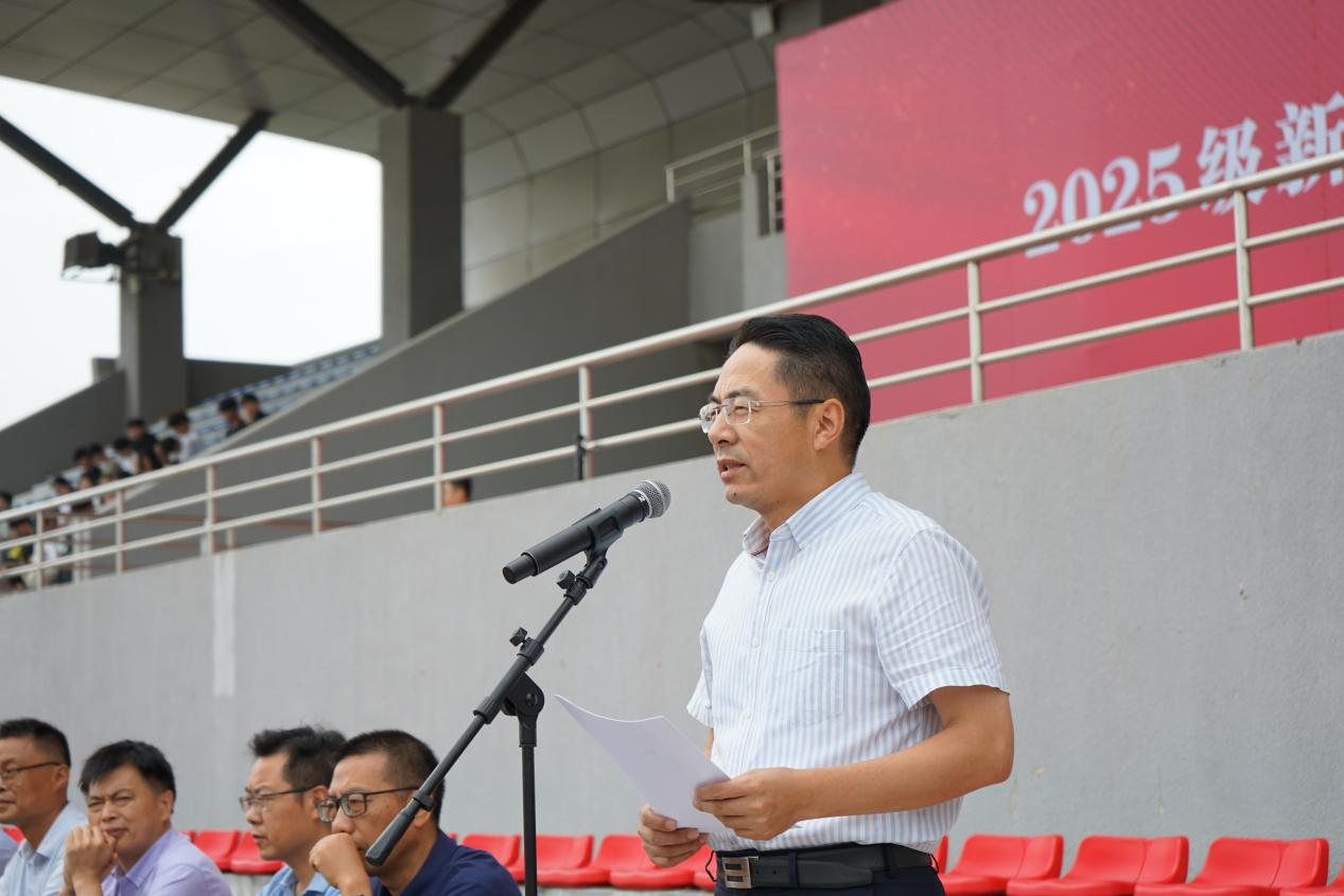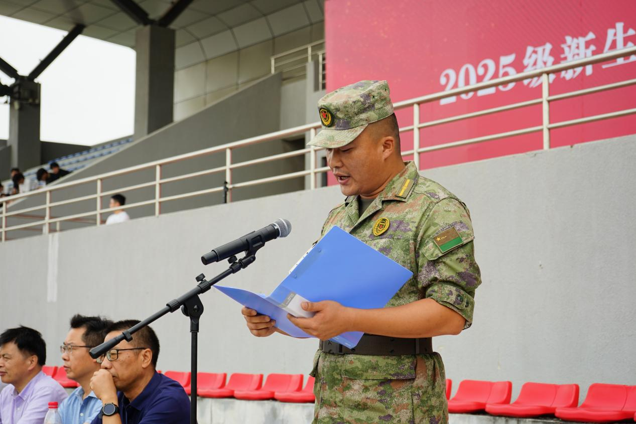 学生处负责人和保卫处负责人分校区宣读《2025级学生军训工作实施方案》。教师代表、军训教官代表、学生代表分别作了发言。