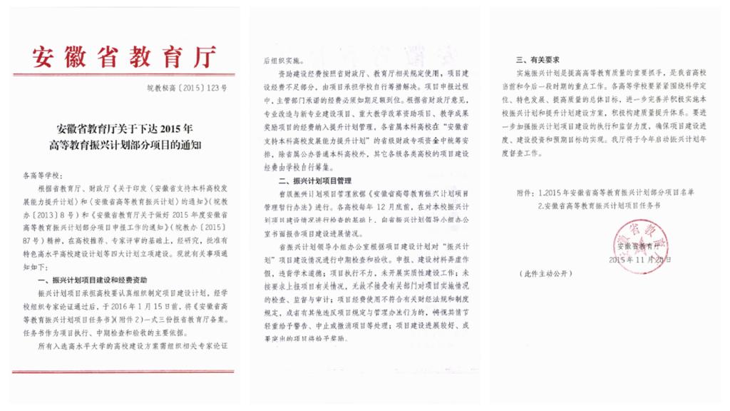 学校通过深化课堂改革,加强教学管理,教学质量不断提高,学生技能水平明显提升。2016年,学院科研项目获得大丰收,一次立项省级重点科研项目18项,其中,自然科学研究项目10项,人文社科项目8项。此次省级重点科研项目的立项数超过了学校历年省级重点项目立项数之和。此外,学校还开展了教育部人文社会科学研究一般项目申报、国家实验室开放基金项目、教育部教育管理信息化应用优秀案例、安徽省自然科学基金计划项目、合肥市社科联招标课题等科研项目申报工作。学院教师取得授权专利数已达150多项。教师发表论文数量和质量也呈现出逐年上升趋势,科研实力迅速增强。