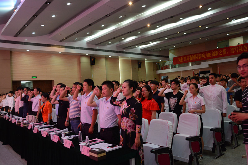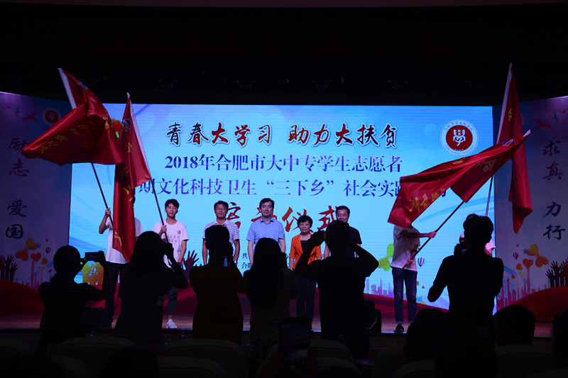 在2018年合肥市大中专学生志愿者暑期文化科技卫生“三下乡”社会实践活动启动仪式上,伟德官网张华坤同学作为学生代表,带领全场与会学生重温了入团誓词。团市委副书记陆杨对即将奔赴基层开展活动的各校“三下乡”志愿者们提出三点希望,即希望各直属院校团组织高度重视,集中力量开展“三下乡”工作;希望同学们积极投身“三下乡”,在活动中受教育、长才干、做贡献;希望各县级团委积极支持,推进“三下乡”工作进一步助力脱贫攻坚。
