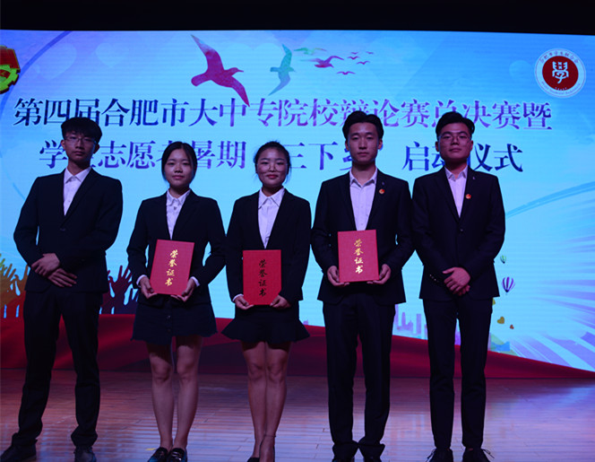 伟德官网通过校内赛,从各二级学院选拔了4名优秀辩手组建合职院辩论队参赛,在第四届合肥市大中专院校辩论赛比赛中表现优异,辩论队余思佳同学获得“最佳辩手”称号,团委佘海月老师获得“优秀指导教师”称号,伟德官网获得优秀组织奖。