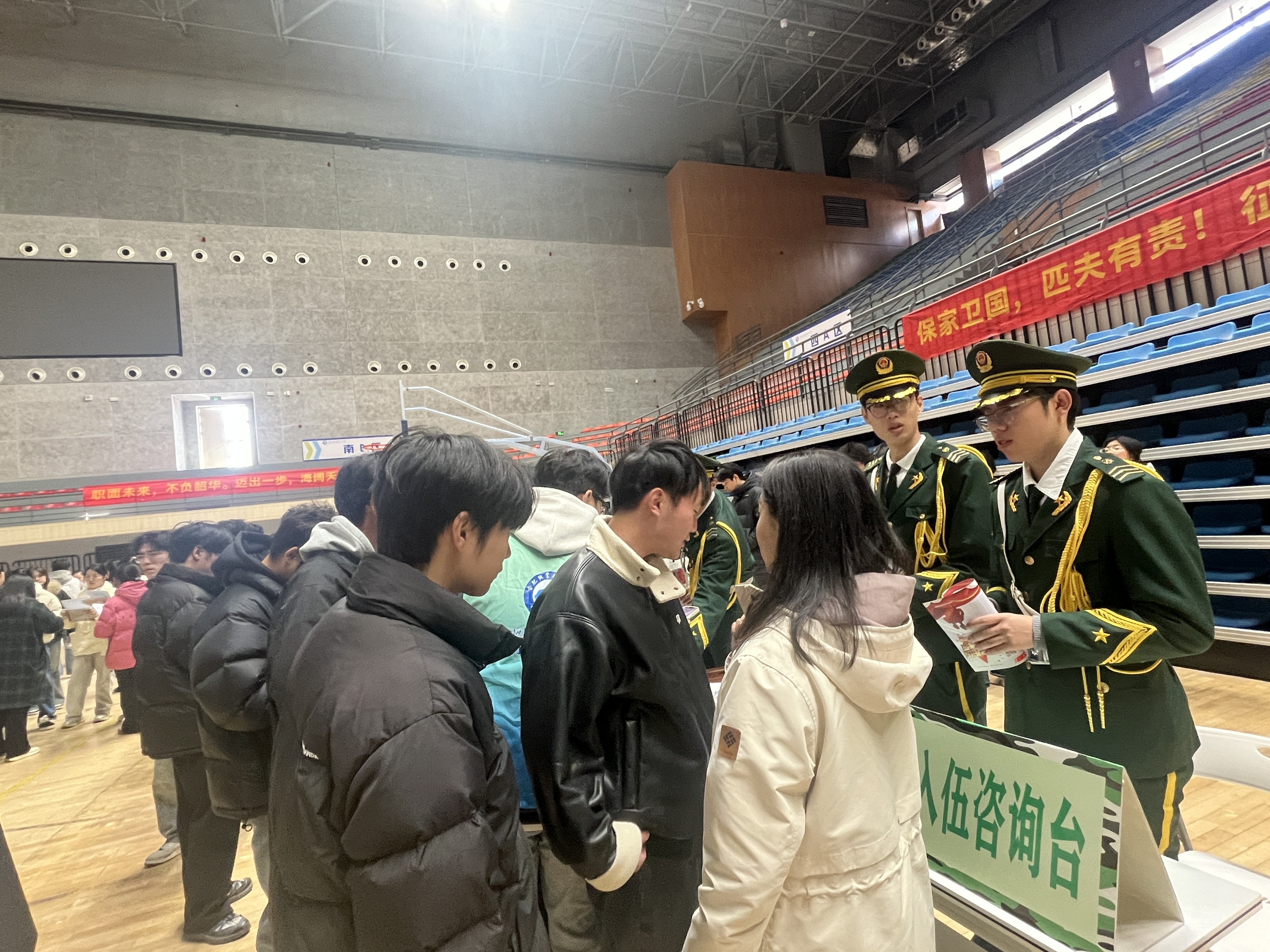 双选会现场:征兵咨询台成“热门展位”