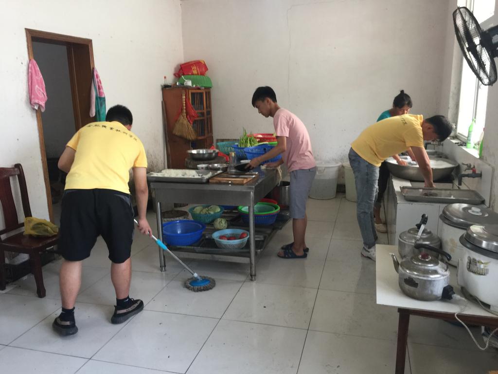 “我来洗菜!”“这个我来削皮”……厨房里源源不断地传来切菜声和水流声。“尽管空气中浓浓的油烟熏得我们睁不开眼,但是一阵阵欢笑声仍然不绝于耳。悠悠饭菜香,莘莘学子忙,在大家的共同努力下,我们享用到一顿丰富的爱心午餐,真的是感动到泪目!”小分队成员谢文昊同学告诉我们说。