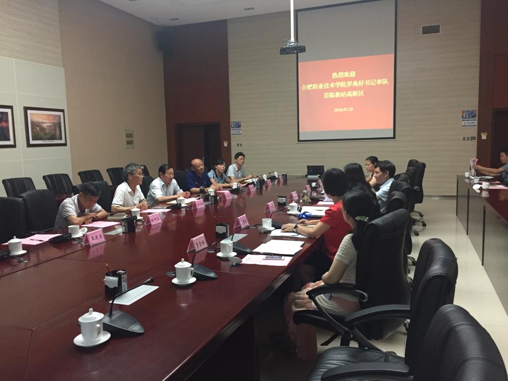 7月25日下午,校党委书记罗兆好、副校长周晓隆带领科技处、教务处、经贸旅游学院和机电工程学院负责人一行6人赴合肥市新站高新区考察,洽谈校地合作事宜。新站高新区管委会副主任刘正义、人社局局长卜红霞、社会事业局高教处处长陶跃红等出席了会议。参观了京东方科技集团股份有限公司。