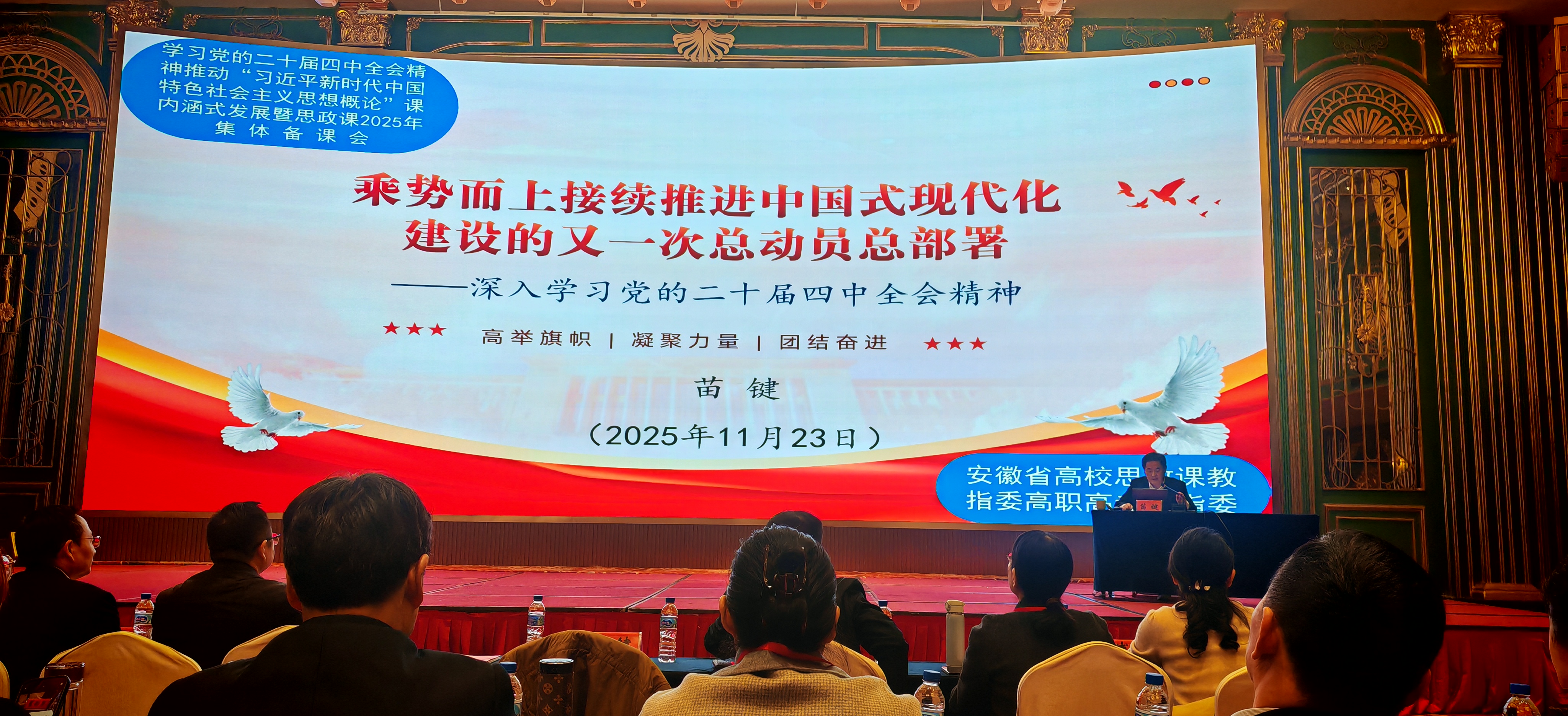 在主旨报告环节,安徽省委党史研究院原副院长苗键从历史、理论与实践的维度,系统解读了党的二十届四中全会精神,深入阐述了中国式现代化的丰富内涵与实践路径。