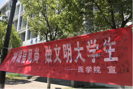 诚乃立身之本,信为道德之基。诚信是中华民族传统文化的精髓,是社会正在倡导的道德风尚。为了提高大学生诚信意识,促进助学贷款健康发展,医学院于5月29日,在学校一食堂门口开展大型诚信签名活动。
