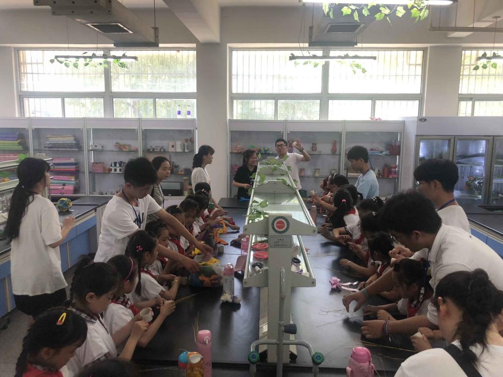 在生物工程学院的花艺展示厅,小学生们了解了各种植物的学名、特性和养护知识,通过“科普微课堂”进行有奖竞答活动,调动了小朋友们参与活动的积极性,让他们主动获取更多的科普知识。在魔幻烘焙坊,师生不仅体验了蛋糕制作,品尝蛋糕的美味,还和志愿者们进行积极互动,了解食品安全的知识。