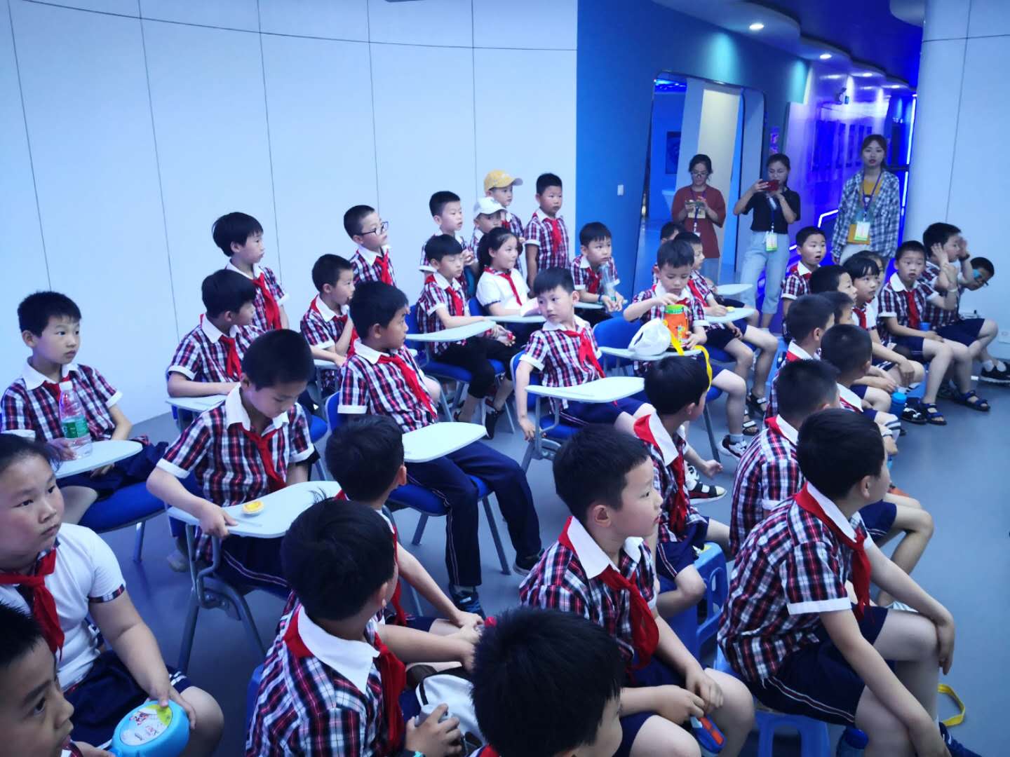 6月5日上午,城北小学二年级(2)班共61名同学,在校长李业宽和两名教师的带领下,来到伟德官网参加“大手拉小手 科技耀童心”活动。