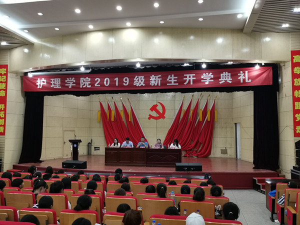 金秋送爽,喜迎八方学子;丹桂飘香,共祝美好明天。9月9日,护理学院在大学生活动中心隆重举行2019级新生开学典礼。护理学院党总书记张明、副院长王玉蓉(主持行政工作)、党总支副书记邹华兵及各相关职能部门负责人参加开学典礼,开学典礼由邹华兵主持。
