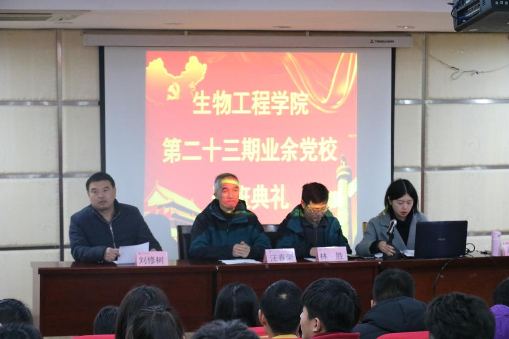 为全面学习贯彻习近平新时代中国特色社会主义思想及全国教育大会精神,切实提高入党积极分子的政治理论素养,12月2日下午,生物工程学院于图书馆一楼报告厅召开第二十三期业余党校开班典礼。生物工程学院党总支委员及全体学员参加了此次开班典礼。开班典礼由该院学生支部书记周婷主持。