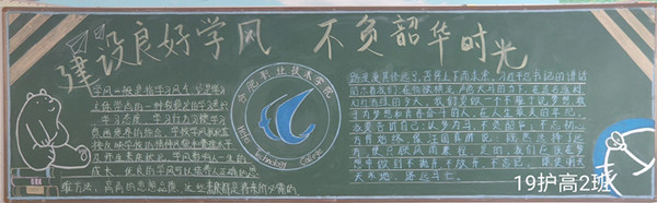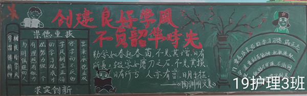学风建设是校风、院风建设的重中之重,树立良好的学风是大学生成才的关键所在,为促进和加强学院学风建设,护理学院在2019级新生班级举行“创建良好学风 不负韶华时光”主题黑板报评比活动。
