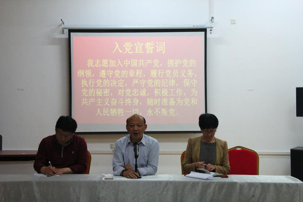 周晓隆副院长首先对按期转正的党员同学表示祝贺。他着重强调了三个问题,即讲政治,讲原则,讲诚信。并对所有党员同学提出了三点要求:要对得起党员的称呼,明白自己的身份;勿忘母校的培养,用自己良好的表现回报母校;常回母校,关注母校的发展。