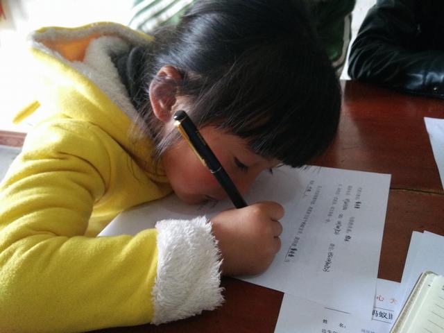 随后志愿者们来到 “蚂蚁宝贝”郑玉婷的家。今年10岁的郑玉婷,在散兵镇谢王小学三年级读书,家里还有一个姐姐在上高中。父亲身患尿毒症,常年透析。母亲外出打工挣钱。小姑娘样貌清秀,但个头比同龄的孩子矮一截。奶奶告诉志愿者,小玉婷从没喝过牛奶,并指着洗好的青菜和莴笋对志愿者说,这就是小姑娘的午餐。