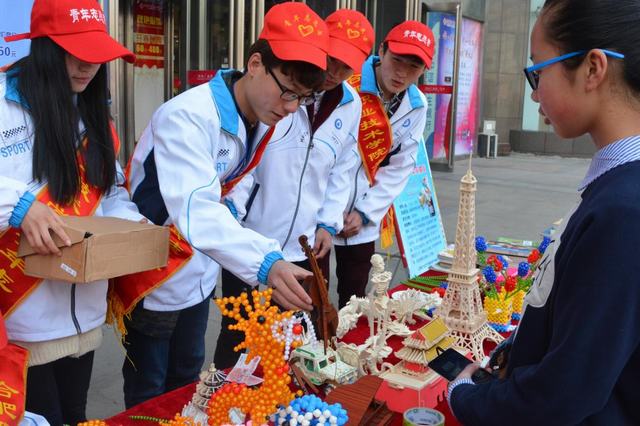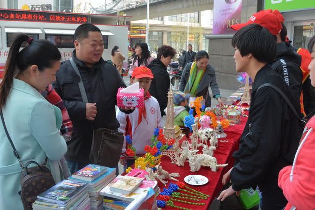 3月27日上午,我院青年志愿者协会在人民路商业街开展了为患白血病的儿童许文志筹集善款的爱心义卖活动。一朵朵栩栩如生的仿真花,一件件活泼可爱的粘土饰品,一个个实用美观的串珠摆件,吸引了众多路人的目光。