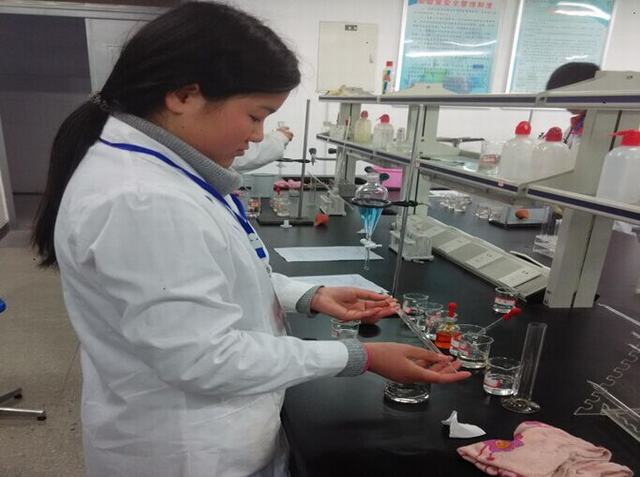 本次技能大赛为实践操作。参赛选手根据比赛先后顺序进入规定的实验室,进行“茶叶中重金属(铅)含量的检测——样品消解液的预处理”的实验操作。为了规范学生的操作,准确无误地进行玻璃仪器的检漏、清洗、润洗、移取试剂、萃取和放液等操作技能,在生物系领导精心策划和组织下,食品专业指导教师充分利用课余和周末时间对参赛学生进行耐心细致的指导。选手以抽签的方式分为四组,由食品专业老师担任裁判,整个比赛体现了公平、公正、客观的原则。选手们作风严谨、技能扎实、井然有序,充分赛出了风格,赛出了水平。