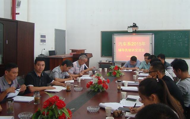 9月2日下午,汽车系在行政楼四楼会议室举行2015年专兼职辅导员培训交流会暨2015年迎新工作会议,院党委副书记胡其云及学生保卫处负责人出席,会议由汽车系主任程师苏主持。
