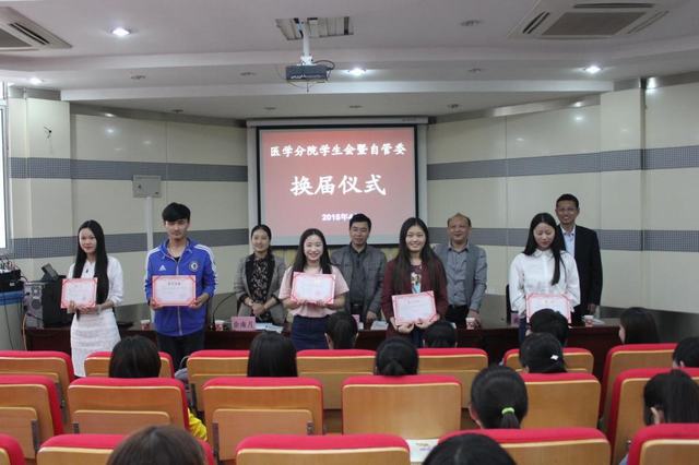 会议对医学分院“第十一届优秀学生会干部”和“第三届优秀自管委干部”进行了表彰。第十二届学生会主席和第四届自管委主席分别作表态发言,并举行了新老学生会、自管委交接章仪式。