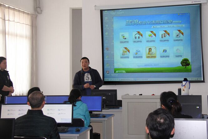为落实职业教育发展对实践教学建设提出的新要求,本着高起点、高水平、高标准建设语音室的思路,院实训中心于3月25日下午邀请了目前在国内智能化云教学领域研发技术相对领先的蓝鸽集团开展了“关于智能化云教学在语言教学方面运用的讲座”。