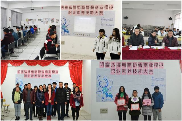 12月13日,我院学生专业社团“弘博电商协会” 在信息楼移动机房成功举办了首次电商专业技能竞赛——《职业素养》技能比赛。竞赛活动得到计算机系和杭州明塞电子商务有限公司的大力支持。有来自社团的8支参赛团队共30多名选手参加了比赛,最终来自14电商3班“超越队”斩获头奖。