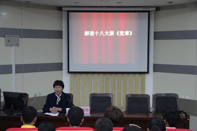 开班典礼结束后,系党总支王秀珍书记为同学们作了本期业余党校的第一个专题讲座《十八大新党章解读》。