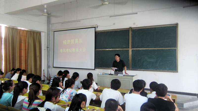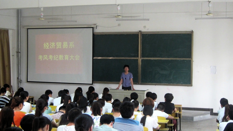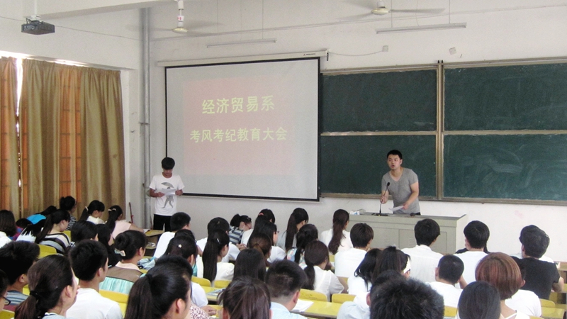 为加强学风建设,严肃考风考纪、杜绝作弊,营造良好考试氛围,培养学生诚信意识和公平公正的社会责任感。经贸系于6月19日下午在教学C一楼阶梯教室召开考风考纪教育大会,经贸系全体学生干部及骨干参加会议。会议由经贸系团总支书记董如恺老师主持,此次会议是经贸系树立良好学风,加强考风考纪教育系列活动之一。