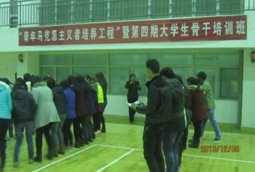 12月3日至5日,院团委在室内体育馆成功举办了青年马克思主义者培养工程暨第四期大学生骨干培训班心理素质拓展活动。184名学员分成四批参加了此次活动。
