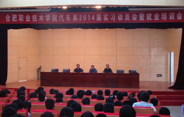 5月3日下午,汽车系在院大学生活动中心举办2014届实习动员会暨就业培训会,汽车系党总支书记汪春荣、主任程师苏、副主任焦来荣和2014届毕业班辅导员以及400多名毕业生参加会议。会议由系党总支书记汪春荣主持。