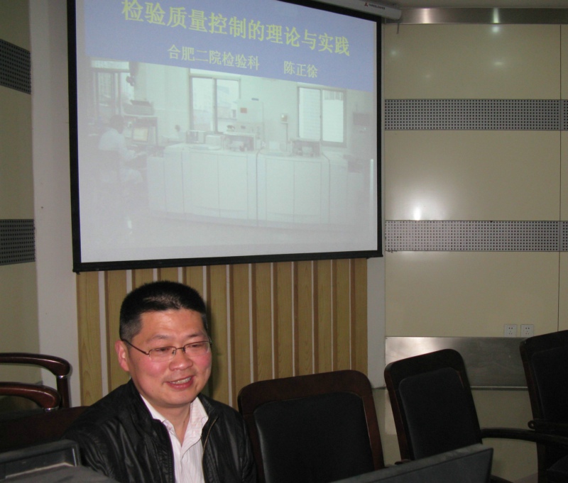 2013年4月24日下午,生物系医学检验专业举办的“行业专家进校园”系列学术讲座第二讲——“生物化学检验质量控制及应用”专题报告会在图书馆一楼学术报告厅隆重举行。讲座由合肥市第二人民医院检验科实验室主任、副主任技师陈正徐主讲。