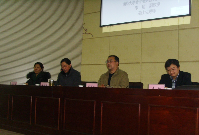 2012年12月12日下午,经合肥市人社局远程教育学习中心的引荐,南京大学商学院会计学、管理学博士、硕士生导师、南大会计与财务研究院副院长李翔在图书馆二楼报告厅,为经贸系会计、管理相关老师、部分2011级会计专业在校学生共200余人,作了题为“资本市场与会计作用”的专题学术讲座。南京大学网络教育学院王其和副院长、教学部陈广侠主任等也参听了学术报告。