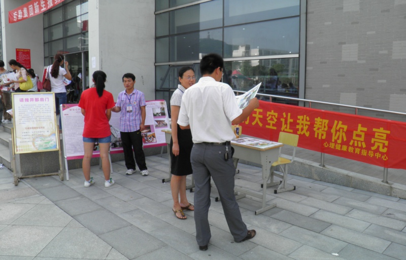 中心通过在校园设展台、展板,积极宣传心理健康教育的理念与知识;向同学们分发中心印制的宣传书签、《心语》心理报等宣传材料,为新生提供解决心理问题的新途径;同时通过现场的介绍、答疑服务,为新生尽快适应学校环境,提供了一条捷径。