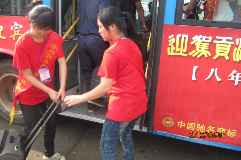 9月7日至8日,三千多名莘莘学子汇聚到了美丽的合肥职院。为做好这次迎新工作,院团委、各系团总支、学生会组织了400多名志愿者参与到迎接2012级新生报到志愿服务活动中来。志愿者们用热情与汗水完美诠释了志愿者精神:奉献、友爱、互助、进步。