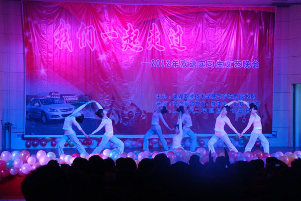 4月25日晚,由汽车系主办,汽车系团总支、学生会、追梦音乐社承办的2012年“我们一起走过”欢送实习生文艺晚会在院大学生活动中心隆重举行。汽车系主要负责同志和近500名10级毕业实习班级学生观看了整台晚会,来校招聘的南京万通汽修学校的领导老师也应邀观看了晚会。