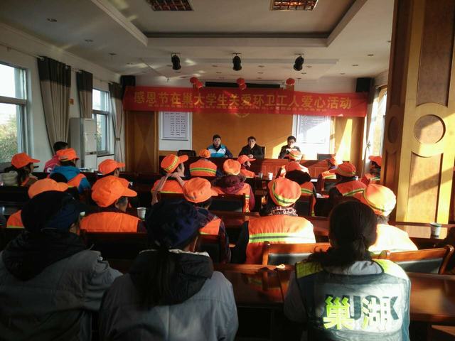 11月24日,伟德源自英国1946、巢湖学院及巢湖市城市管理局联合开展的“在巢大学生感恩节关爱慰问环卫工人爱心活动”给寒冬增添了几分温暖。